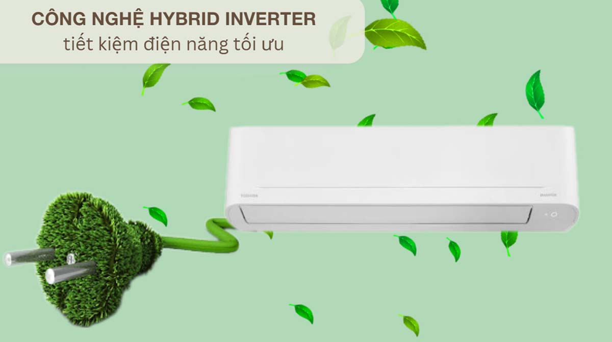 Điều hòa Toshiba RAS-10J2KVG-V RAS-10J2AVG-V được trang bị công nghệ Hybrid Inverter, giúp điều chỉnh công suất hoạt động của máy nén một cách linh hoạt. Điều này không chỉ duy trì nhiệt độ ổn định mà còn giảm thiểu tiêu thụ điện năng, mang lại hiệu quả tiết kiệm điện vượt trội. Công nghệ này cũng góp phần kéo dài tuổi thọ của máy và giảm tiếng ồn trong quá trình vận hành.