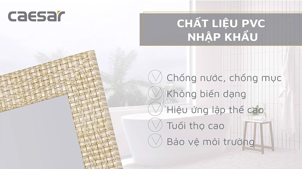 - Viền nhựa PVC chắc chắn, chống thấm nước, cong vênh, mối mọt: Viền gương làm từ chất liệu nhựa PVC bền bỉ, không bị ảnh hưởng bởi độ ẩm, chống cong vênh và mối mọt, giữ cho gương luôn trong tình trạng tốt nhất.
