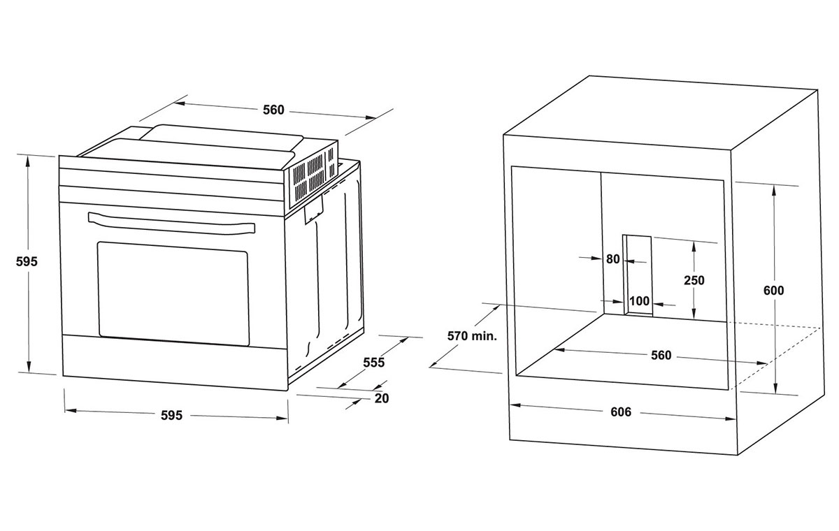 - Kích thước lò: 595x595x575mm (Rộng x cao x sâu)