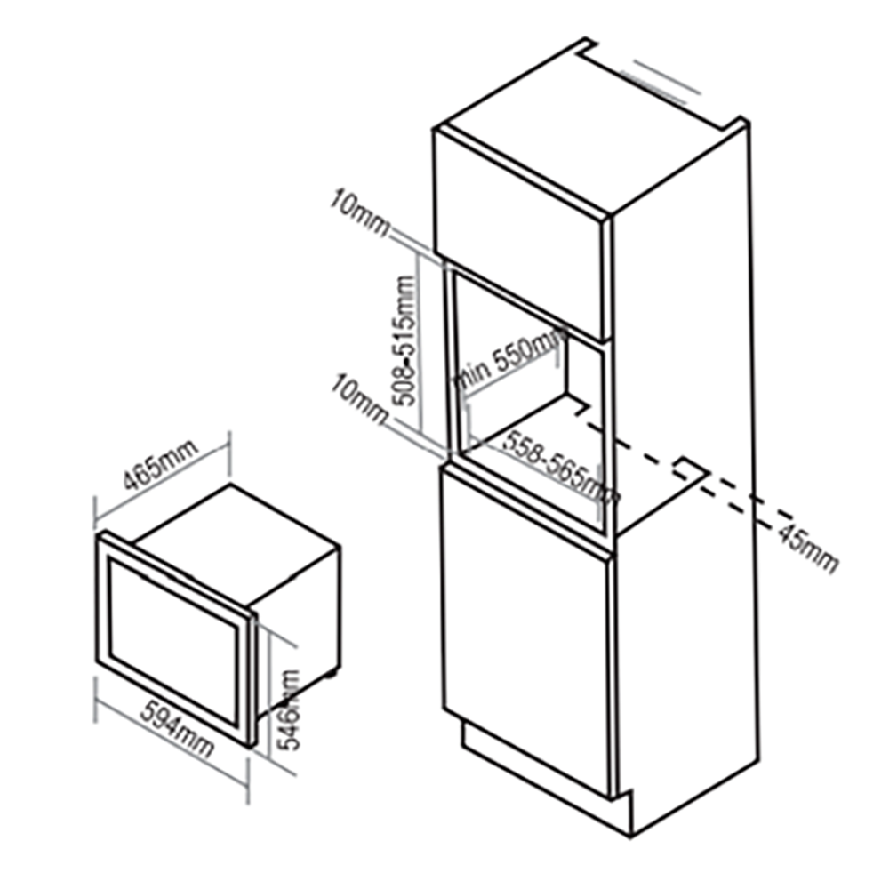 Bản vẽ kích thước Lò vi sóng BAUER BMO25H39SL âm tủ