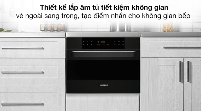 - Kích thước lò Hafele HO-KT45B với chiều rộng 60cm phù hợp lắp âm với hầu hết các kích thước tủ bếp hiện nay trên thị trường