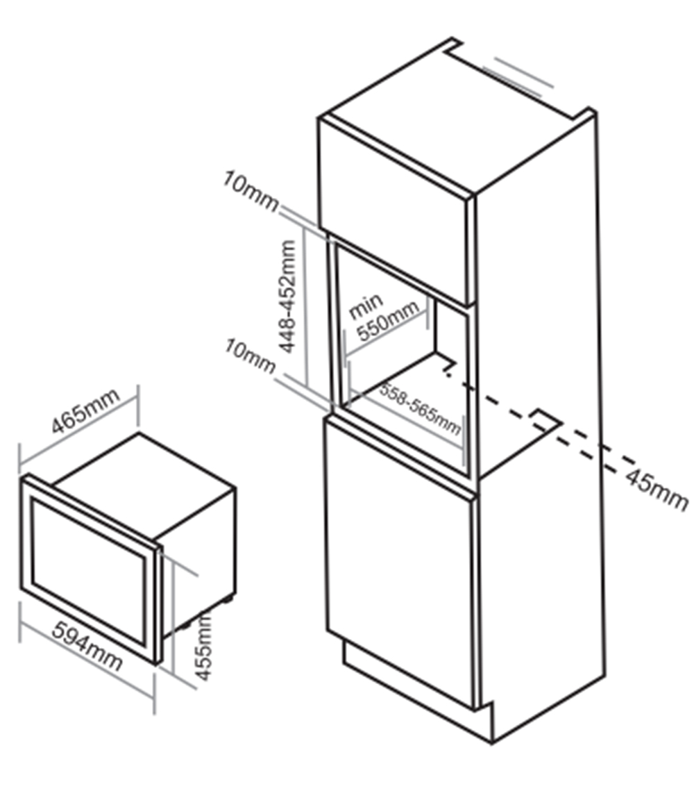 - Kích thước lò: 594x455x465mm
