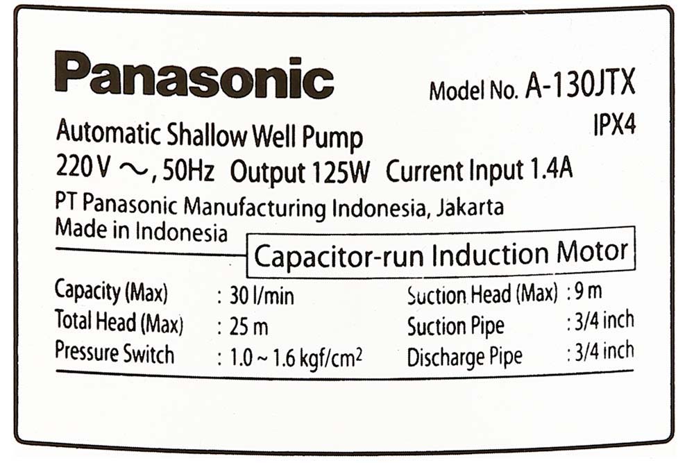 Thông số kỹ thuật Máy bơm tăng áp PANASONIC A-130JTX 125W