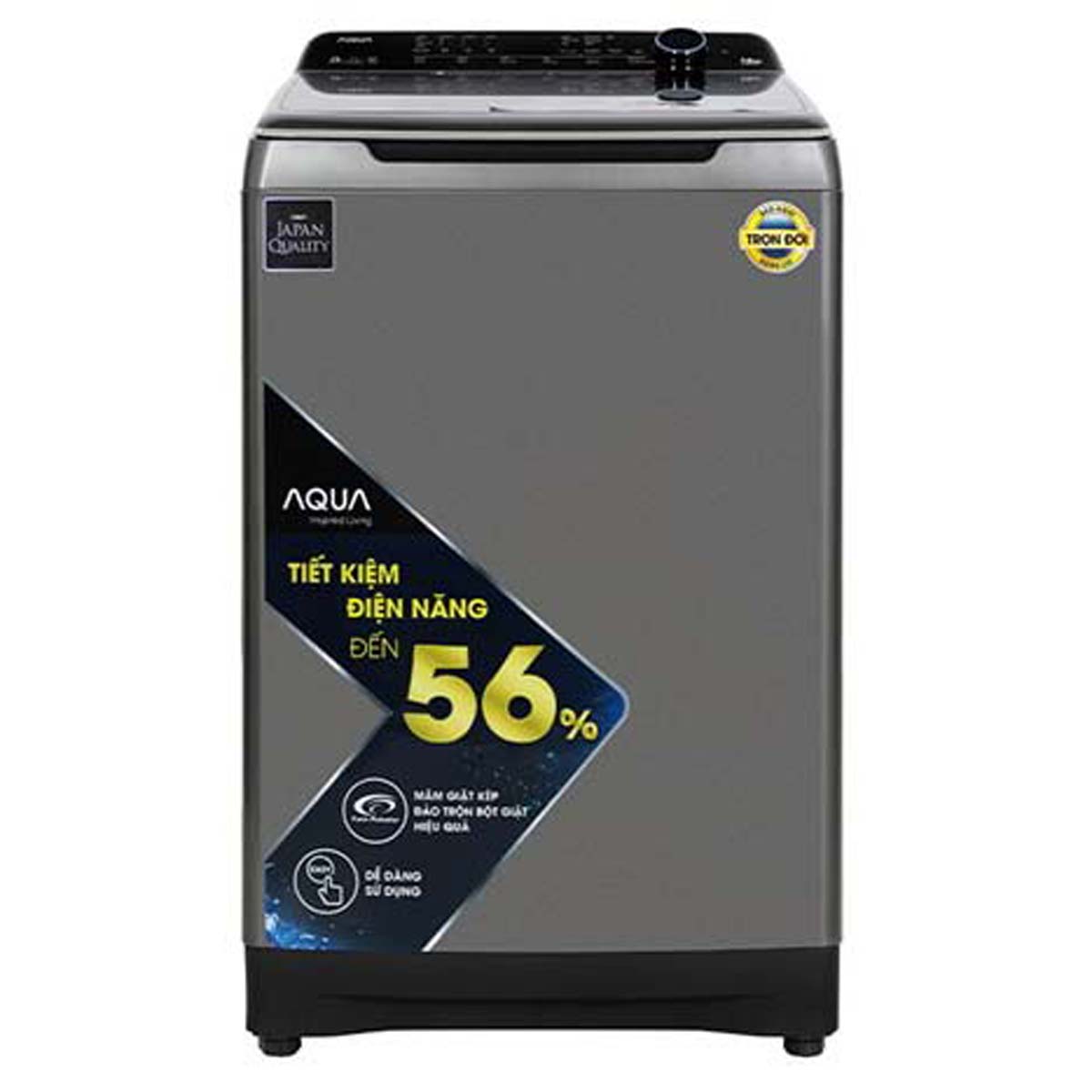 Máy giặt Aqua AQW-DR160UHT.PS có thiết kế cửa trên hiện đại kết hợp gam màu bạc thanh lịch, phù hợp nhiều không gian nội thất. Nắp máy bằng kính chịu lực có khả năng giảm chấn, dễ thao tác khi mở đóng. Bảng điều khiển song ngữ Việt – Anh được bố trí nghiêng kèm màn hình hiển thị và núm xoay chọn chương trình giúp người dùng sử dụng dễ dàng, kể cả người lớn tuổi.