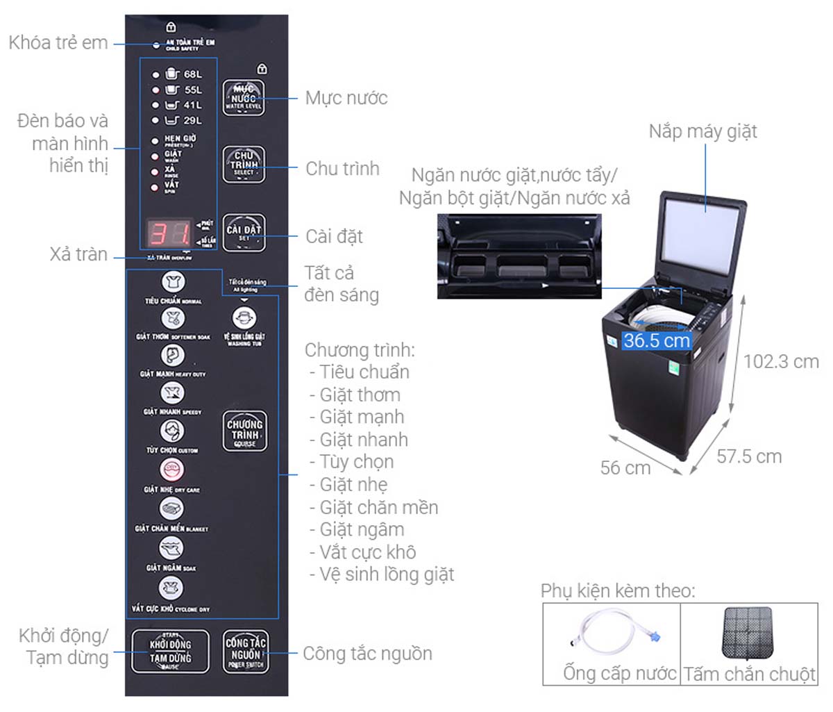 | Chất liệu lồng giặt | Thép không gỉ |