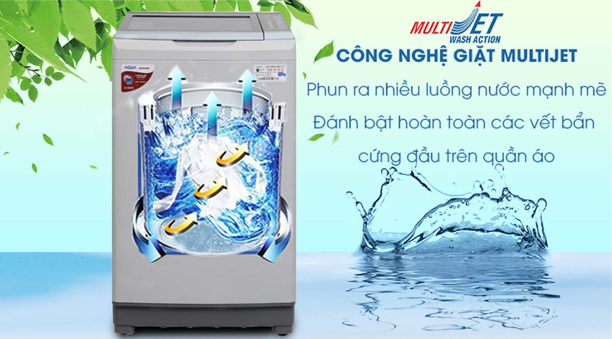 Công nghệ Multi Jet trên máy giặt Aqua AQW-U850BT tạo ra các tia nước mạnh mẽ phun từ nhiều hướng, giúp làm ướt quần áo nhanh chóng và đều. Điều này không chỉ tăng hiệu quả giặt sạch mà còn bảo vệ sợi vải khỏi hư tổn. Công nghệ này đặc biệt hữu ích khi giặt các loại vải dày hoặc quần áo có vết bẩn cứng đầu.