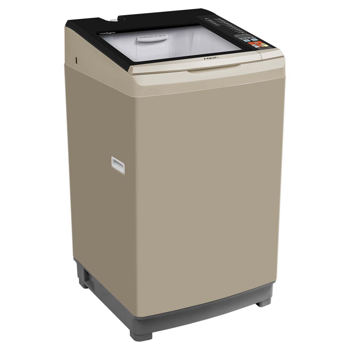 Máy giặt Aqua AQW-U90BT sở hữu thiết kế lồng đứng truyền thống với nắp kính chịu lực trong suốt, mang lại vẻ ngoài hiện đại và tinh tế. Gam màu bạc hoặc vàng kim giúp máy dễ dàng hòa nhập vào nhiều không gian nội thất khác nhau. Bảng điều khiển đặt phía sau, tích hợp nút bấm nhẹ nhàng và dễ sử dụng, phù hợp với cả người lớn tuổi. Với khối lượng giặt 9 kg, máy đáp ứng tốt nhu cầu giặt giũ của gia đình từ 4–6 người, kể cả các loại chăn mền dày mùa đông.