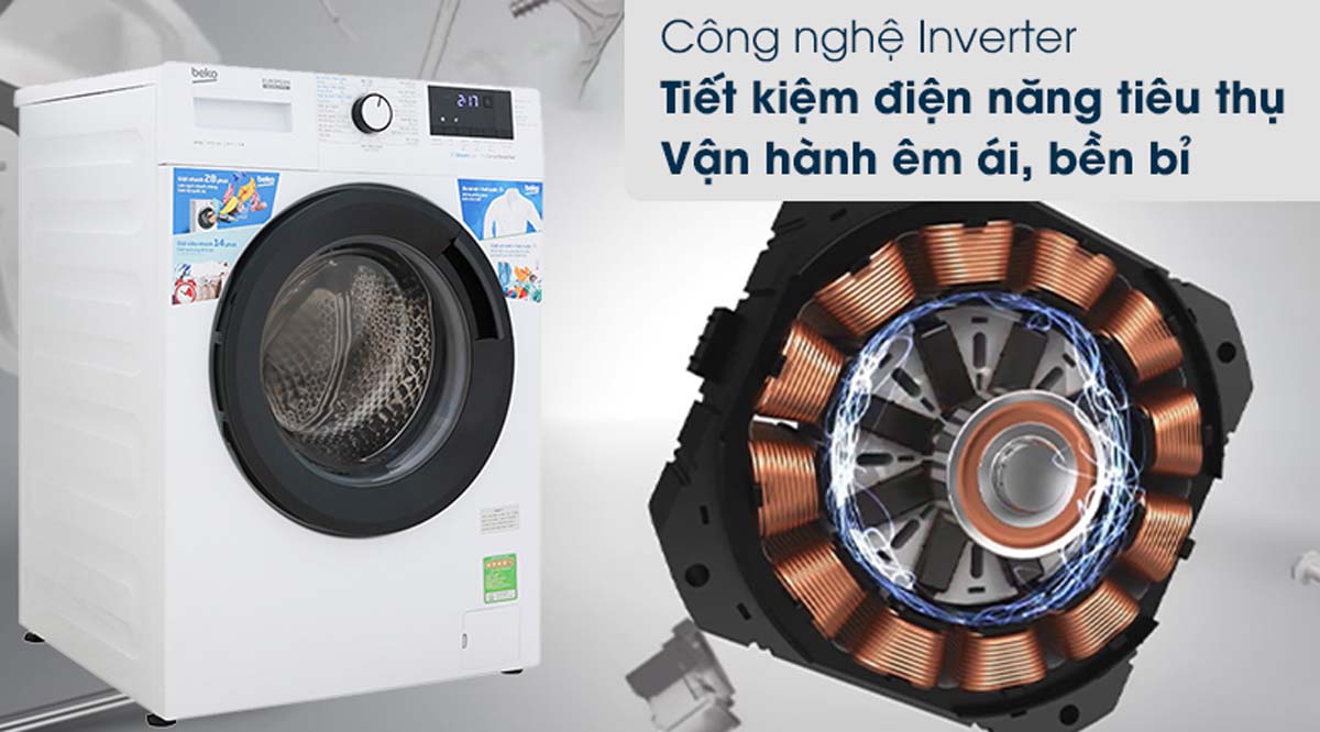 Máy giặt Beko WCV10612XB0ST được trang bị động cơ ProSmart Inverter giúp tiết kiệm điện năng vượt trội, giảm tiếng ồn và tăng độ bền. Động cơ này tối ưu chuyển động quay của lồng giặt, hạn chế rung lắc trong quá trình giặt – vắt, mang lại sự êm ái và ổn định khi vận hành ở tốc độ cao.Tinh nang May giat Beko WCV10612XB0ST 10kg Inverter 9
