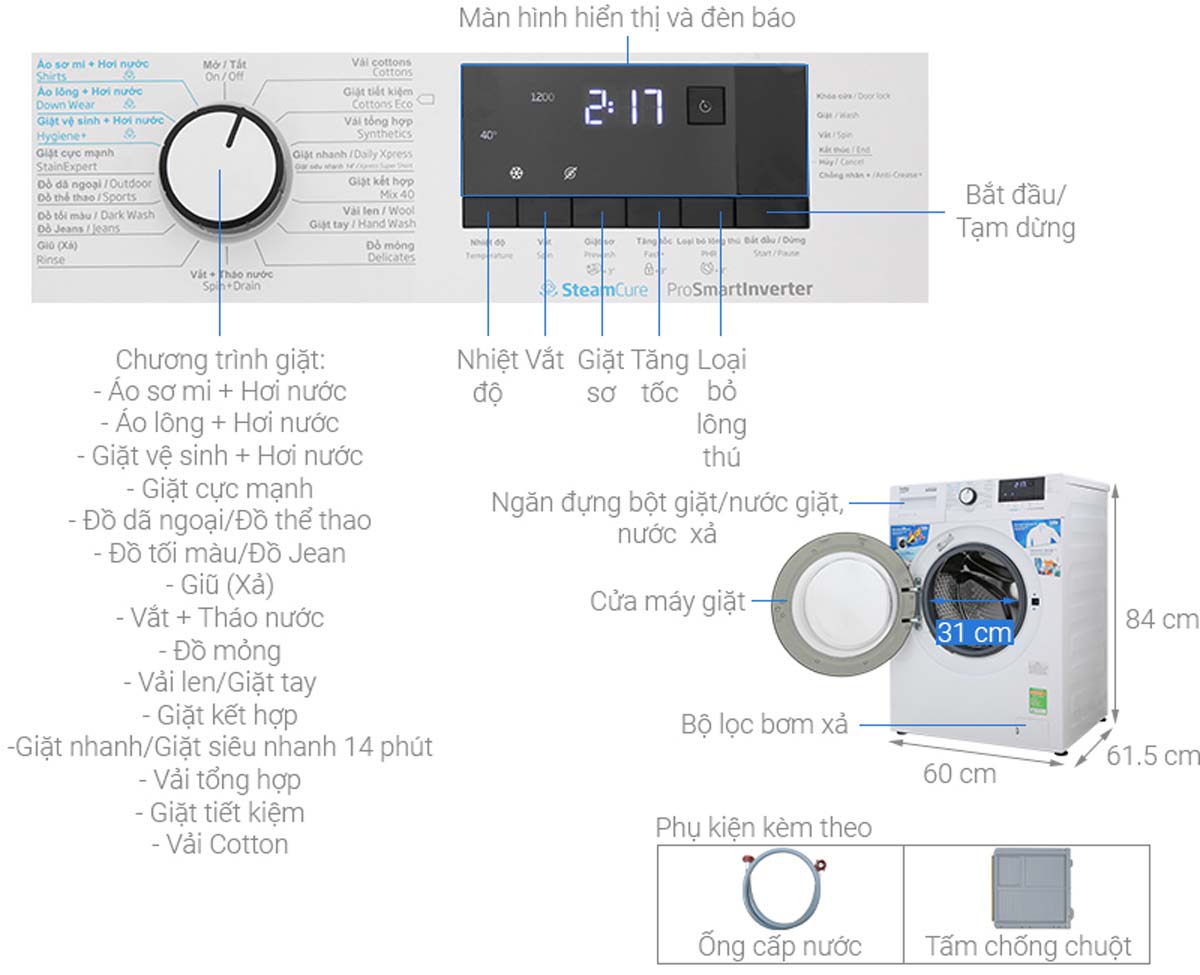 thong so ky thuat May giat Beko WCV10612XB0ST 10 Kg Long Ngang Inverter