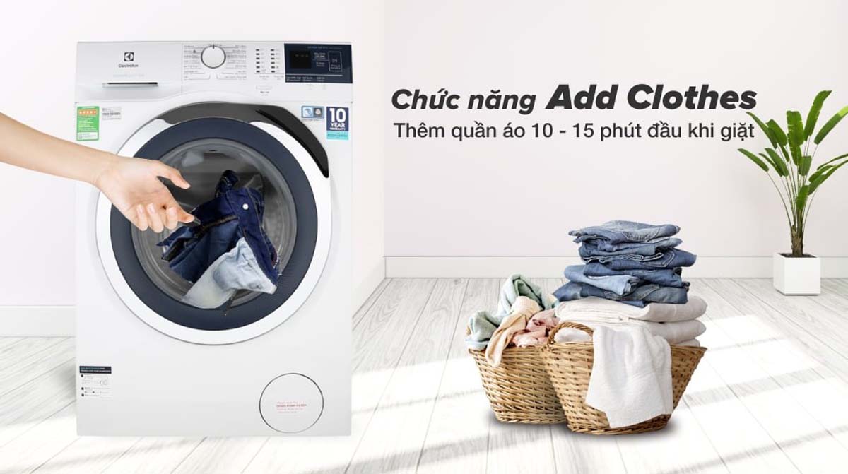 Trong vòng 15 phút đầu tiên của chu trình giặt, người dùng có thể tạm dừng máy để thêm quần áo bị bỏ sót một cách dễ dàng. Tính năng này mang lại sự linh hoạt và tiện lợi, giúp bạn không còn lo lắng khi quên cho quần áo vào máy sau khi đã bắt đầu chu trình giặt.