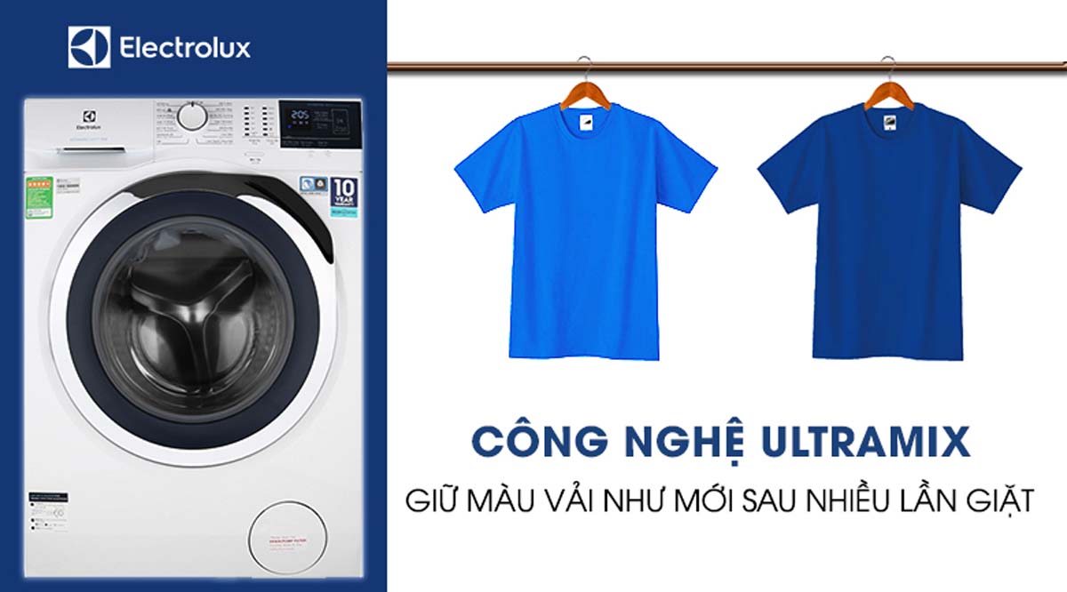 UltraMix là công nghệ tiên tiến giúp hòa tan hoàn toàn chất giặt tẩy trước khi đưa vào lồng giặt, đảm bảo chất tẩy được phân bố đều và thẩm thấu sâu vào sợi vải. Nhờ đó, quần áo được giặt sạch hiệu quả mà không lo cặn bột giặt bám trên vải, đồng thời giữ màu sắc tươi mới và bền lâu hơn.