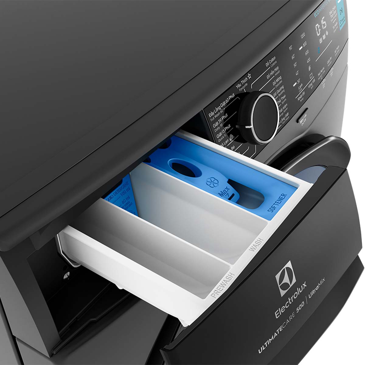 Công nghệ UltraMix giúp hòa tan hoàn toàn chất giặt tẩy trước khi đưa vào lồng giặt, đảm bảo quần áo được giặt sạch sâu mà không để lại cặn bột giặt, đồng thời bảo vệ màu sắc và chất lượng vải.