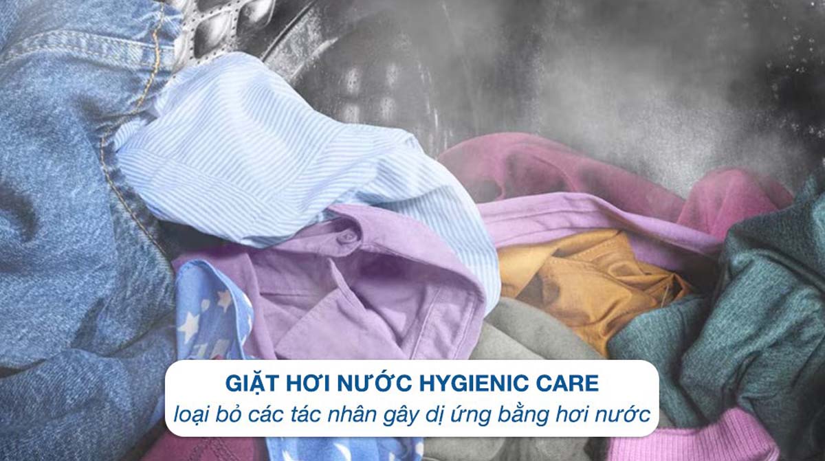HygienicCare sử dụng hơi nước ở nhiệt độ 40°C được phun vào lồng giặt ở cuối chu trình, giúp loại bỏ đến 99,9% vi khuẩn và các tác nhân gây dị ứng trên quần áo, đồng thời nhẹ nhàng với sợi vải và tiết kiệm năng lượng.
