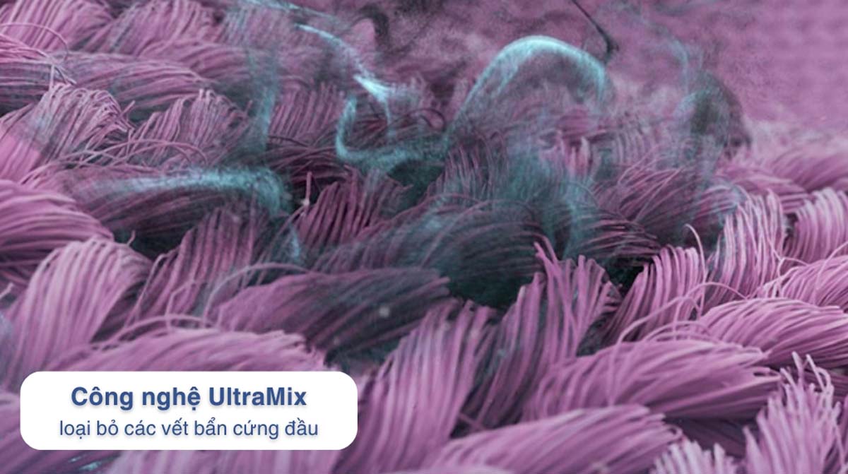 Công nghệ UltraMix hòa tan hoàn toàn chất giặt tẩy trước khi đưa vào lồng giặt, giúp chất tẩy thấm sâu vào sợi vải, giặt sạch hiệu quả và bảo vệ màu sắc quần áo tốt hơn, đồng thời ngăn ngừa cặn bột giặt bám trên vải.