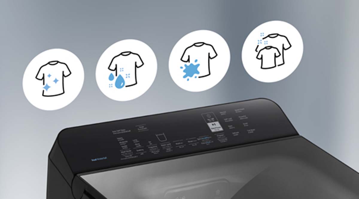 Bảng điều khiển được thiết kế nghiêng về phía sau, thuận tiện cho việc thao tác và tránh bị ướt khi lấy quần áo ra khỏi máy, tăng tính tiện dụng và trải nghiệm người dùng.