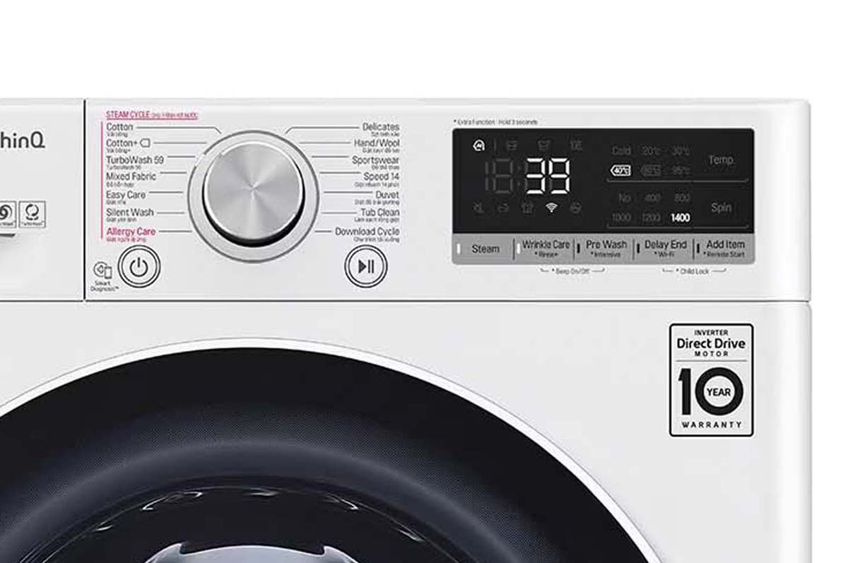 - Tiện ích: Thêm đồ trong khi giặt (Add Item), Khóa trẻ em, Giặt nước nóng, Giặt hơi nước, Điều khiển từ xa qua ứng dụng LG ThinQ, Kết nối Wi-Fi, Chẩn đoán lỗi Smart Diagnosis, Công nghệ giặt tiết kiệm TurboWash