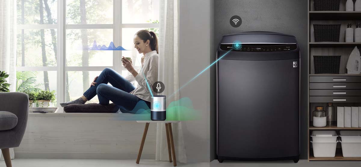 Tính năng ThinQ™ cho phép bạn khởi động, tạm dừng, theo dõi và nhận thông báo hoàn tất chu trình giặt từ xa thông qua smartphone, đồng thời tải thêm chương trình giặt mới khi cần.