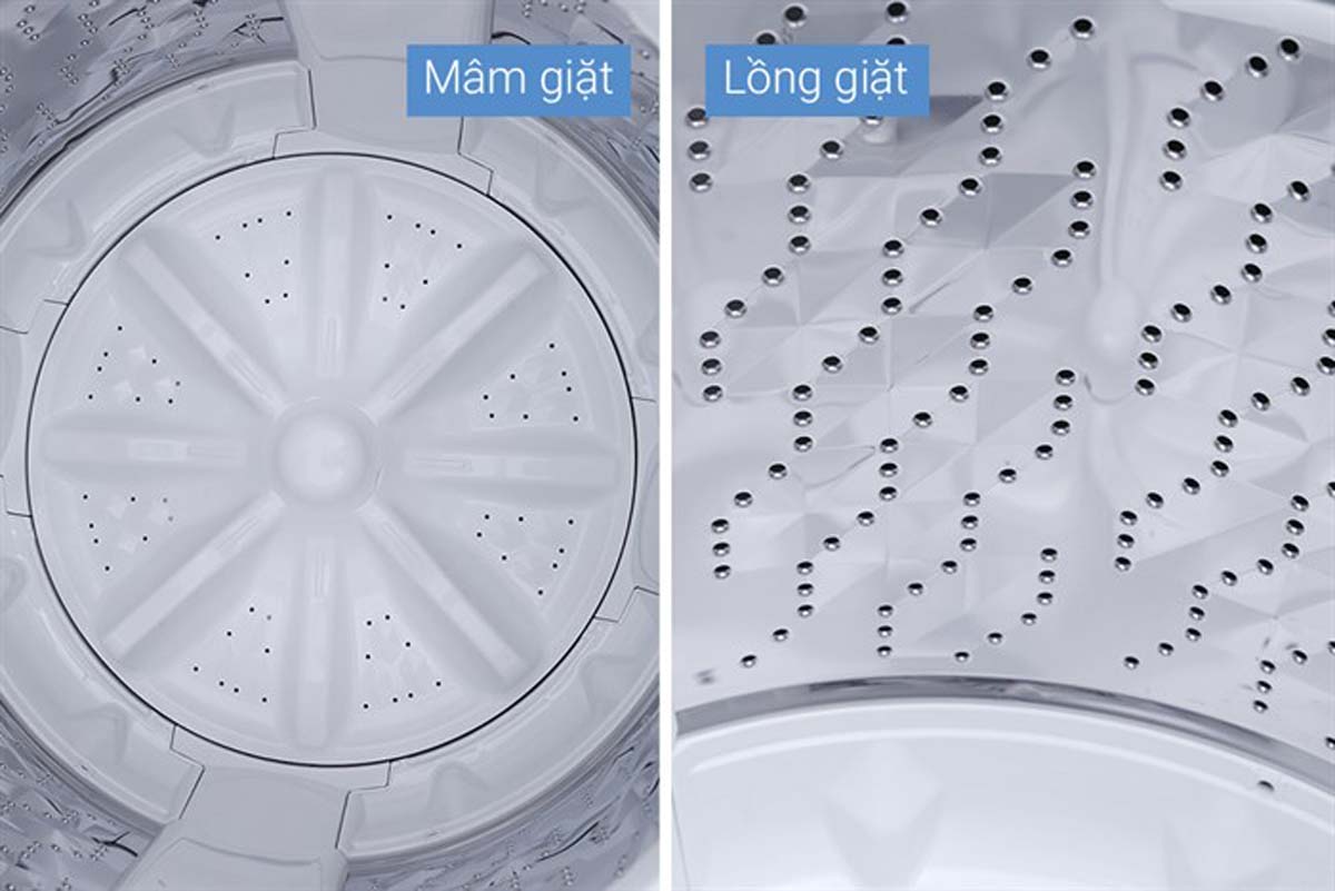 - Chương trình giặt: 9 chương trình, bao gồm: Giặt thường, Giặt nhanh, Đồ trẻ em, Chăn màn, Giặt nhẹ, Giặt ngâm, Vệ sinh lồng giặt, Tiết kiệm nước, Sấy gió 90 phút