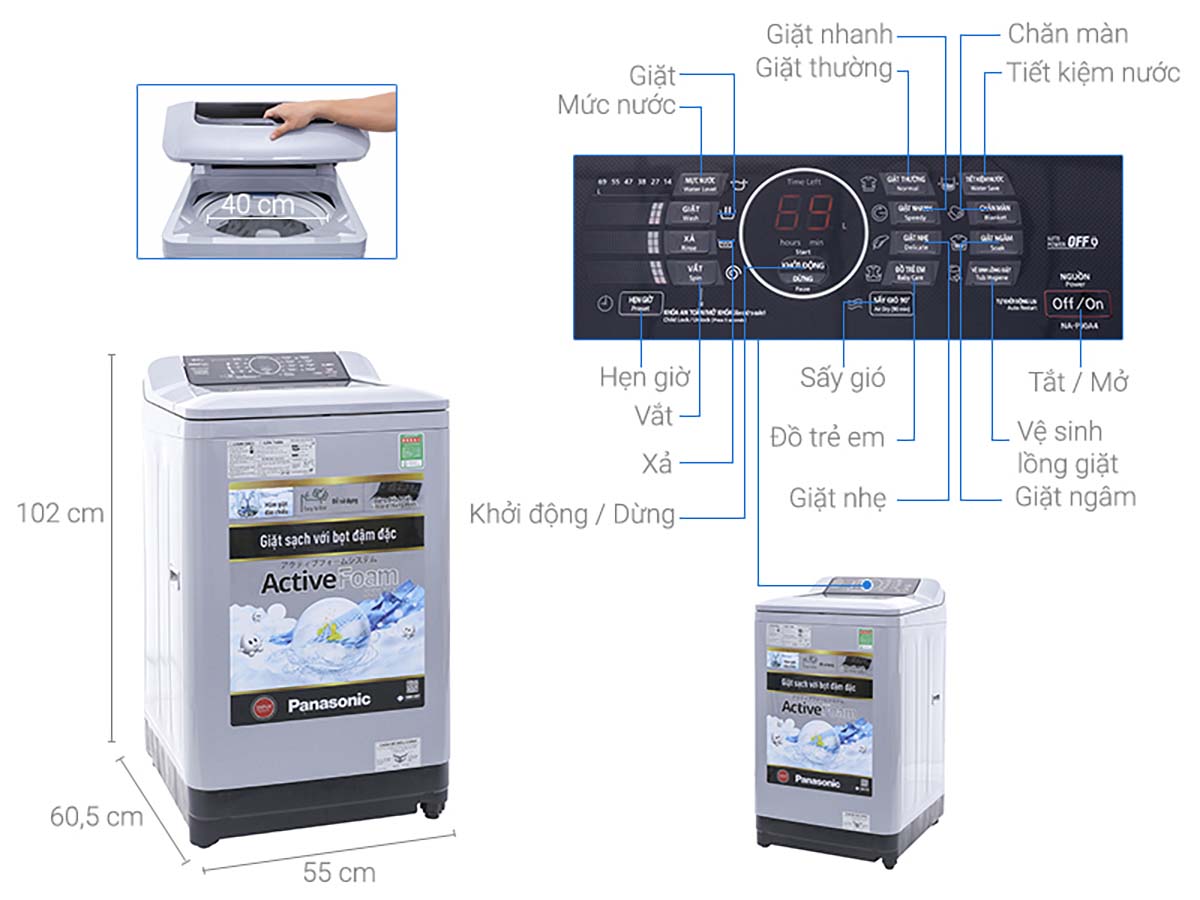 tinh nang May giat Panasonic NA F90A4GRV 9Kg long dung inverter
