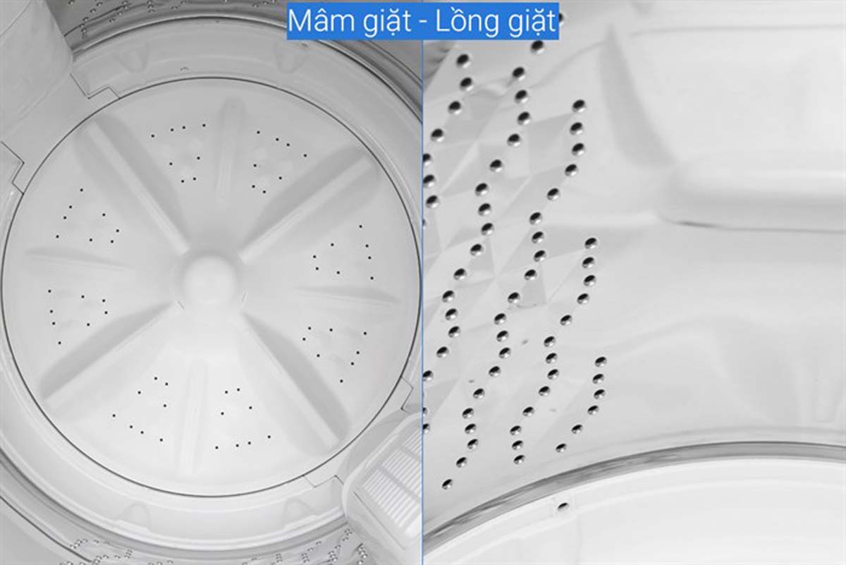 - Loại máy giặt: Cửa trên, lồng đứng