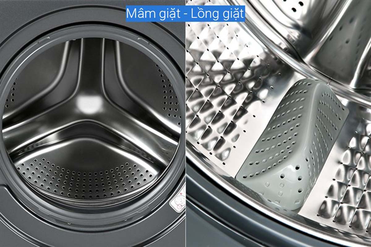 • Tính năng nổi bật: Giặt hơi nước diệt khuẩn, làm mới quần áo bằng hơi nước, vòng đệm cửa kháng khuẩn ABT, Smart Dual Spray tự làm sạch mặt trong cửa, lồng giặt lớn 525 mm giảm xoắn rối