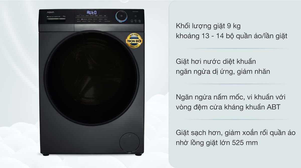 Máy giặt Aqua AQD-D902G.BK 9 Kg Inverter