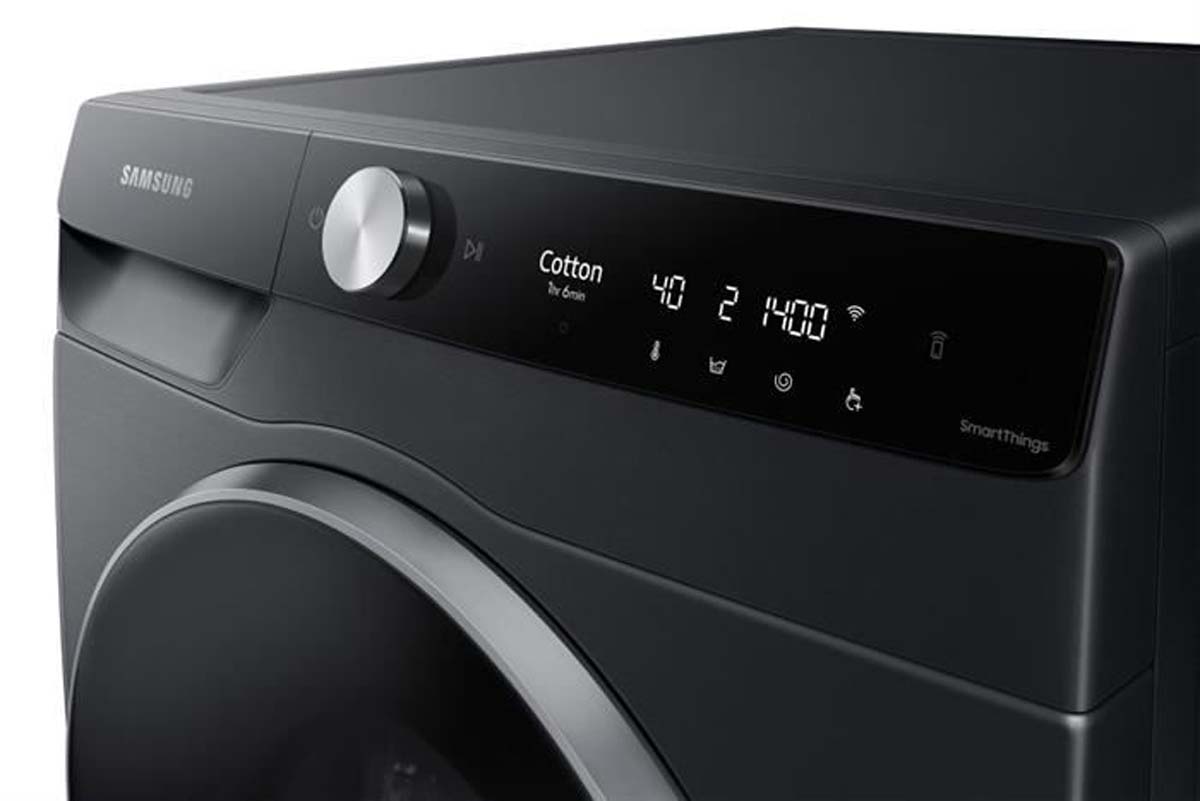 Ứng dụng SmartThings cho phép bạn điều khiển máy giặt từ xa qua điện thoại, tùy chỉnh chương trình, nhận cảnh báo và phân tích hiệu suất tiêu thụ. Chế độ AI Energy giúp giám sát và tiết kiệm năng lượng chủ động.