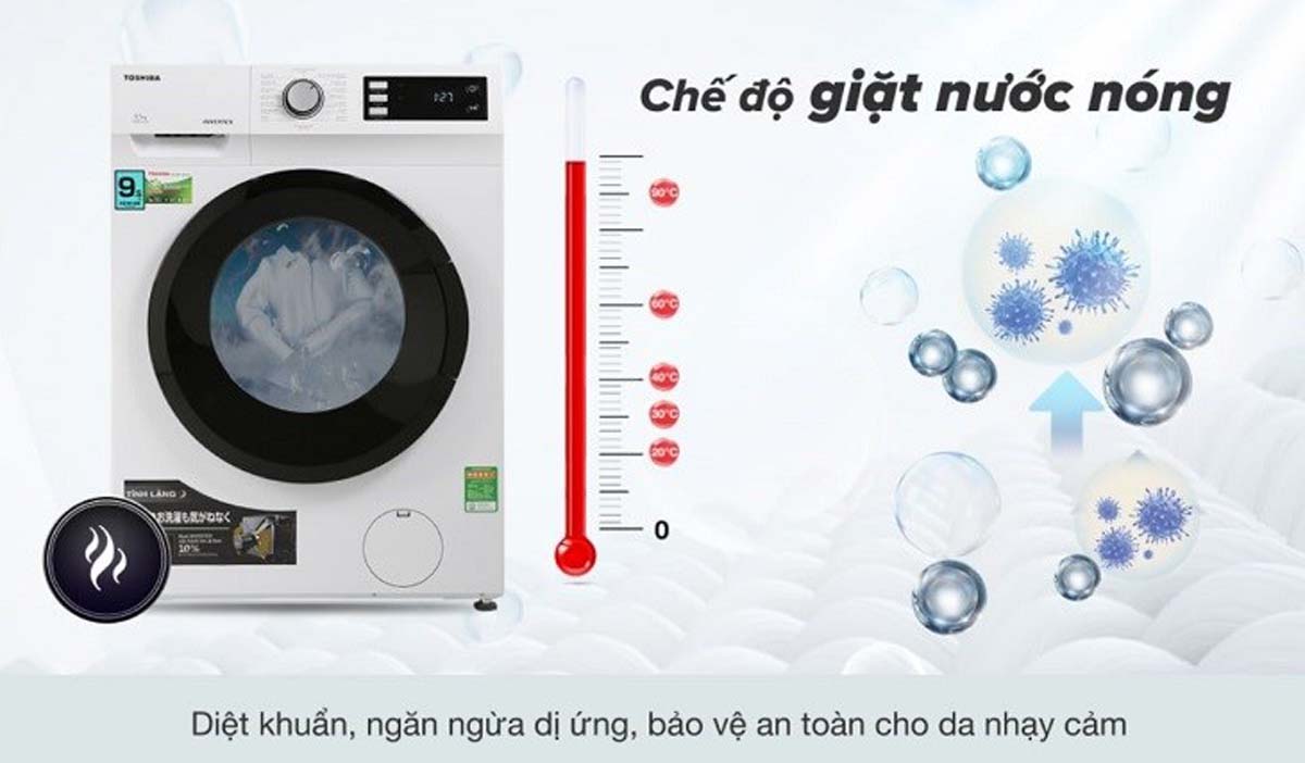 Công nghệ giặt nước nóng Hot Wash diệt khuẩn và loại bỏ cặn bẩn