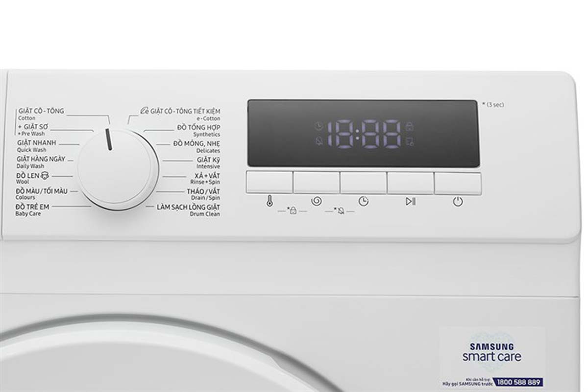 - Tiện ích: Hẹn giờ giặt, Khóa trẻ em, Tự động vệ sinh lồng giặt