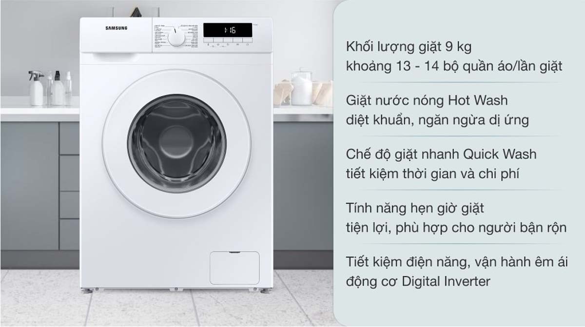 - Khối lượng giặt: 9 kg