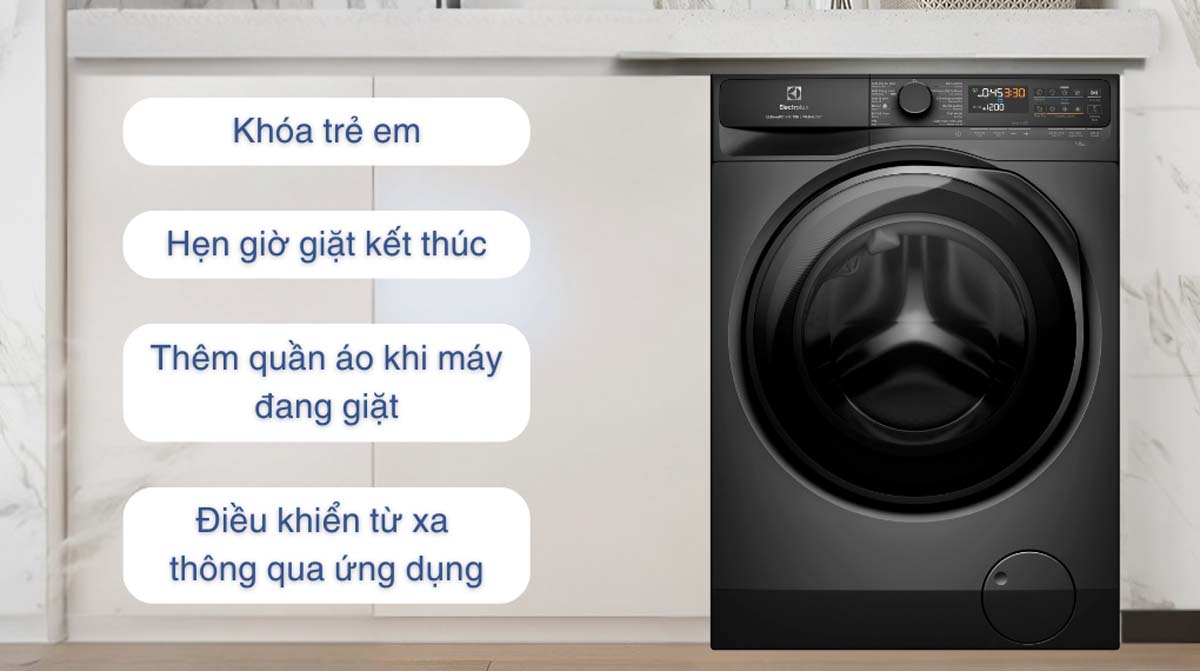 Máy giặt EWW1143R7SC hỗ trợ kết nối Wi-Fi, cho phép bạn điều khiển và theo dõi quá trình giặt từ xa thông qua ứng dụng trên điện thoại thông minh, mang lại sự tiện lợi và linh hoạt trong việc giặt giũ.