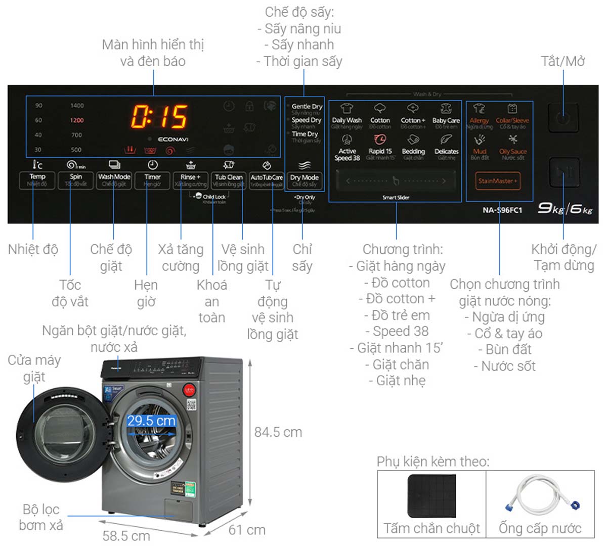Tính năng Máy Giặt Sấy Panasonic NA-S106FC1LV Giặt 10kg Sấy 6kg