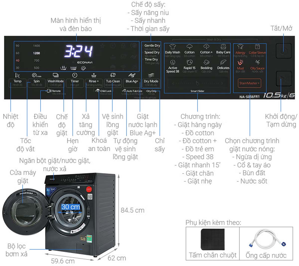 Tính năng Máy Giặt Sấy Panasonic NA-S106FR1BV Giặt 10Kg Sấy 6Kg