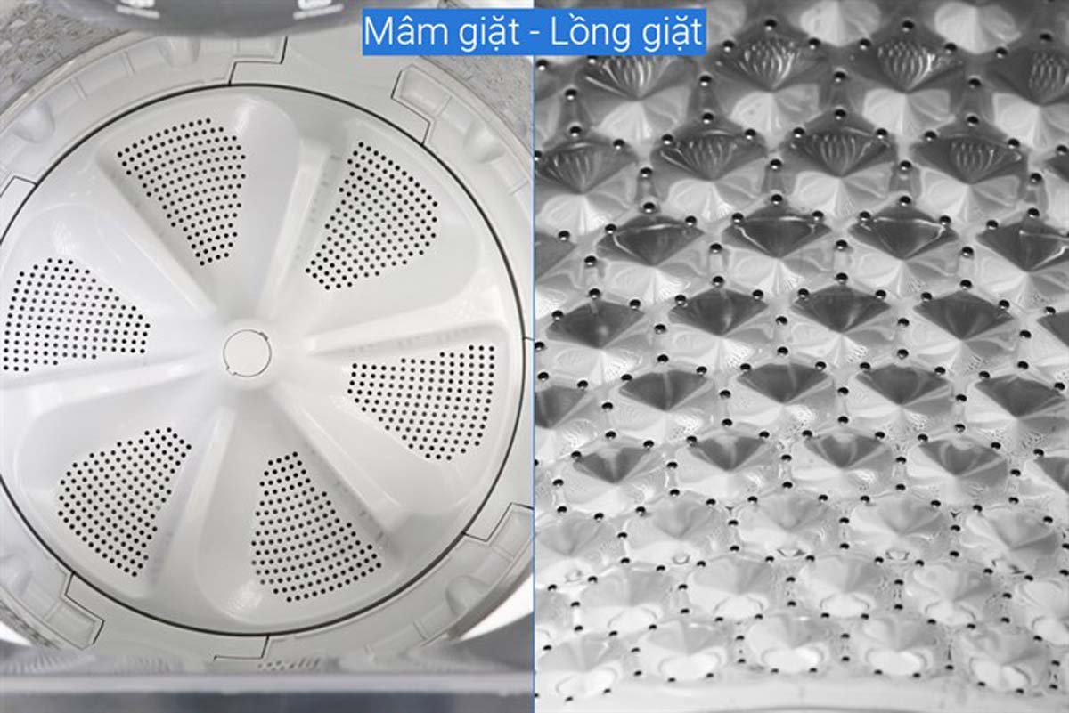 - Lồng giặt: Lồng đứng, chất liệu thép không gỉ