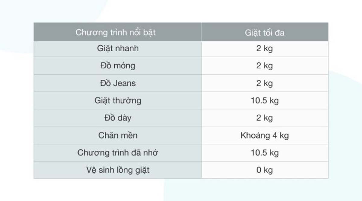 - Số chương trình giặt: 8 chương trình