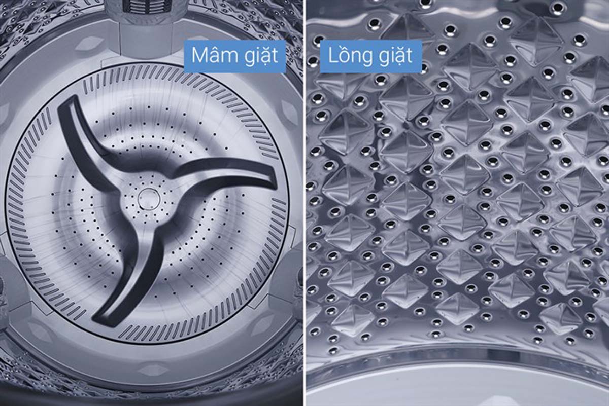 - Lồng giặt: Lồng đứng, chất liệu thép không gỉ