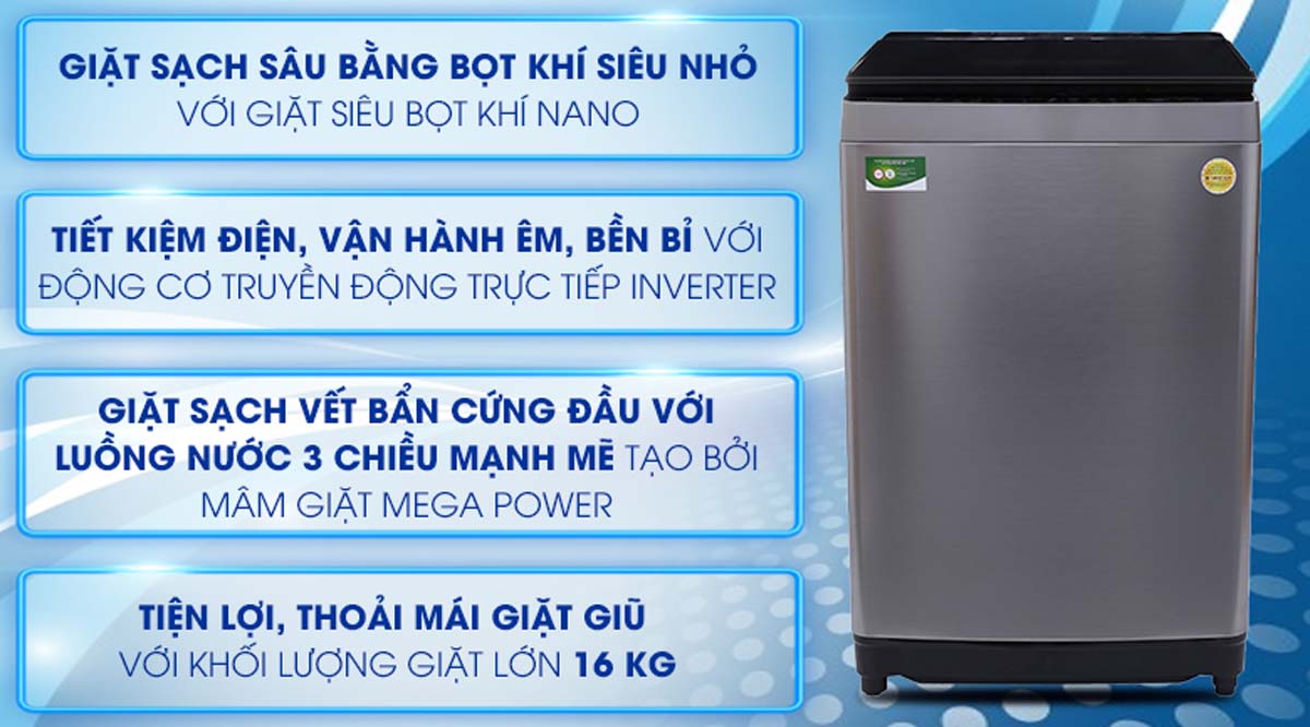 Tính năng Máy giặt Toshiba AW-DUG1700WV (SS) Inverter 16 kg
