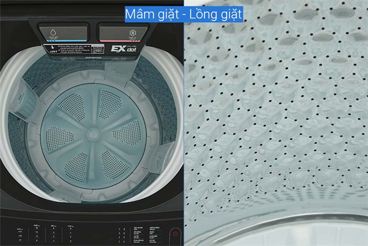 - Lồng giặt: Lồng đứng, chất liệu thép không gỉ