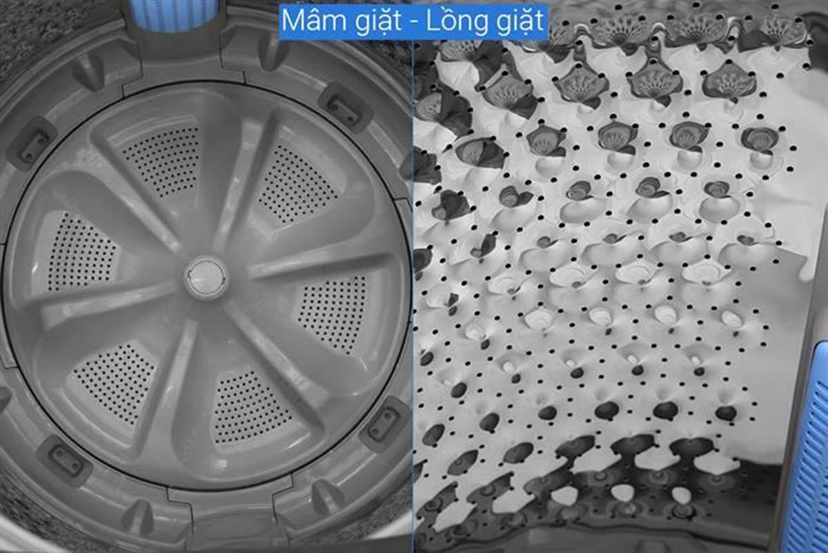 - Lồng giặt: Lồng đứng, chất liệu thép không gỉ