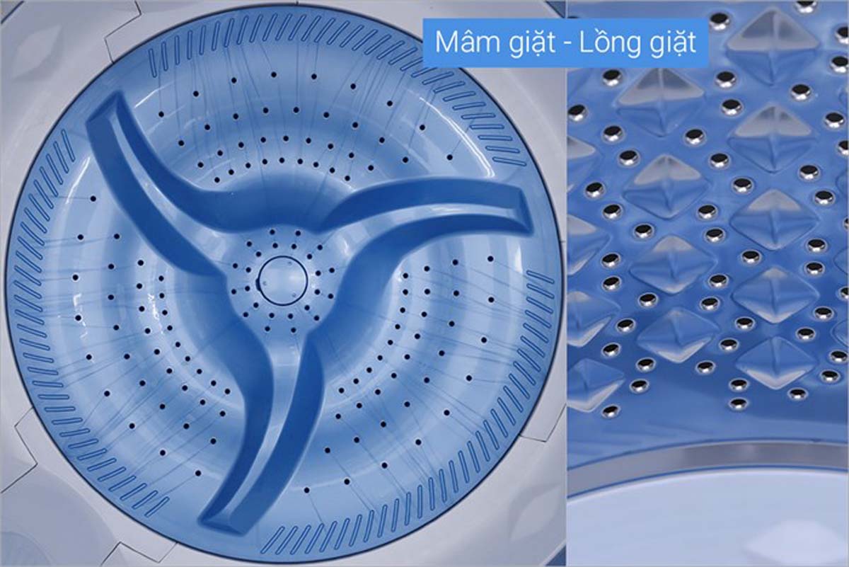 - Lồng giặt: Lồng đứng, chất liệu thép không gỉ