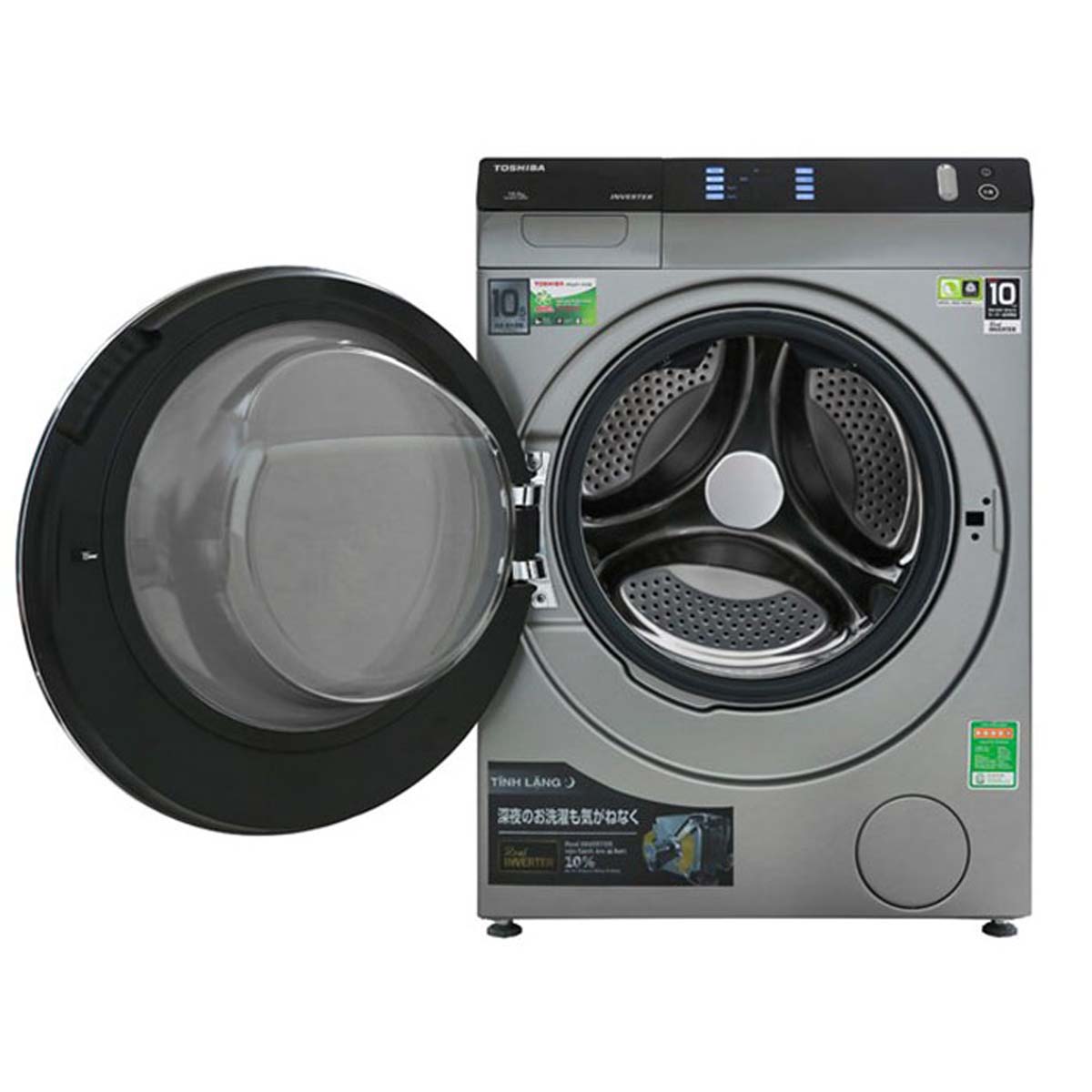 - Tiện ích nổi bật: Inverter tiết kiệm điện, động cơ truyền động dây curoa, tự vệ sinh lồng giặt, hẹn giờ giặt, tự khởi động lại khi có điện, khóa trẻ em, vắt cực khô, ghi nhớ chương trình giặt dang dở, nắp kính chịu lực đóng mềm, tiết kiệm điện năng khi ở chế độ chờ