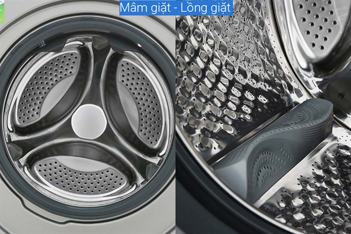 - Lồng giặt: Lồng ngang, chất liệu thép không gỉ