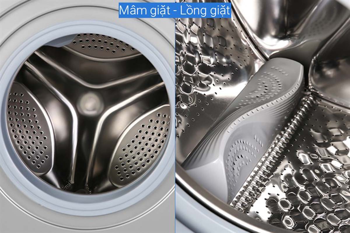 - Lồng giặt: Lồng ngang, chất liệu thép không gỉ