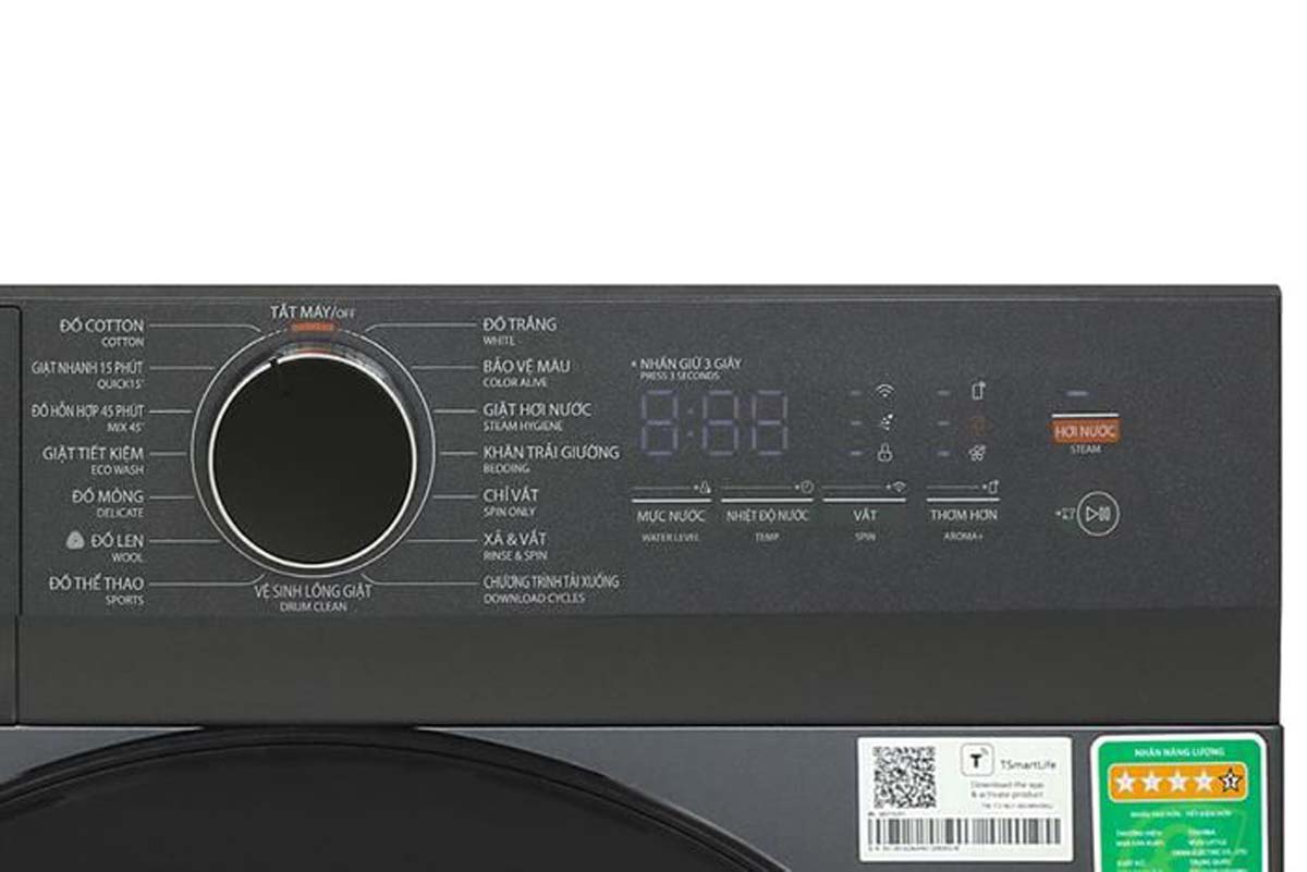- Tiện ích nổi bật: Kết nối Wi-Fi, giặt nhanh 15 phút, giặt nước nóng, thêm đồ khi giặt, khóa trẻ em, hẹn giờ, vắt cực khô