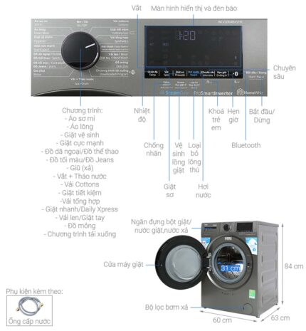 Máy giặt Beko WCV9648XSTM 9kg Inverter