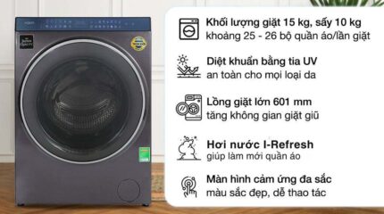 Máy giặt sấy Aqua AQD-DH1500G.PP 15kg 10kg Inverter
