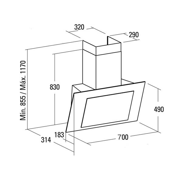Bản vẽ kích thước Máy hút mùi CATA THALASSA 700 XGWH/D 02178005 70cm kính vát