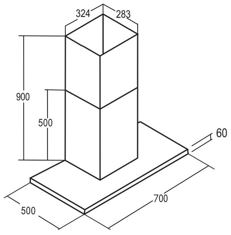Bản vẽ kích thước Máy hút mùi BAUER BC 70ED 70cm chữ T