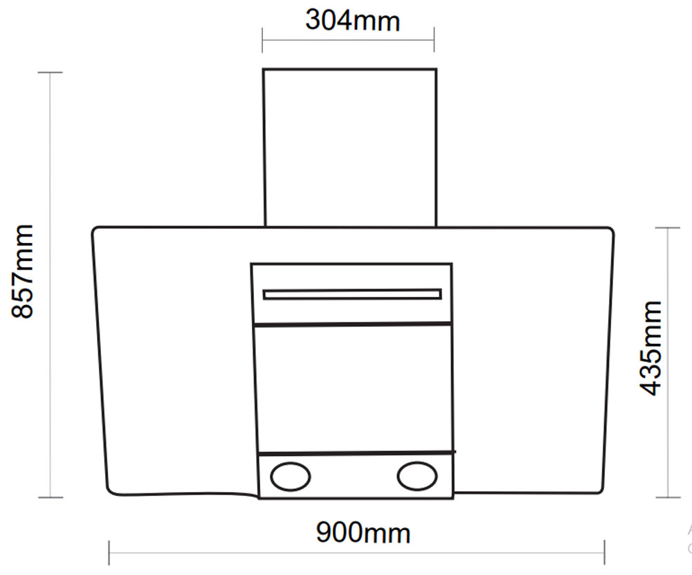 Bản vẽ kích thước Máy hút mùi BAUER BC 90ES PLUS 90cm kính vát