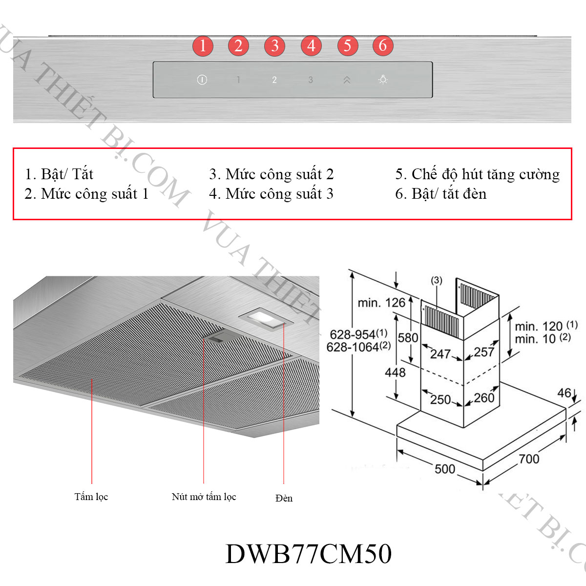 Tính năng cơ bản máy hút mùi áp tường Bosch DWB77CM50
